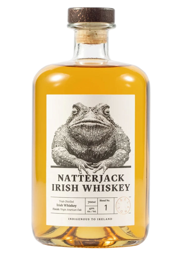 El whiskey irlandés Natterjack es una mezcla única, triplemente destilado. Lleva el nombre del único sapo autóctono de Irlanda y es el primer lanzamiento de Gortinore Distillers and Co.